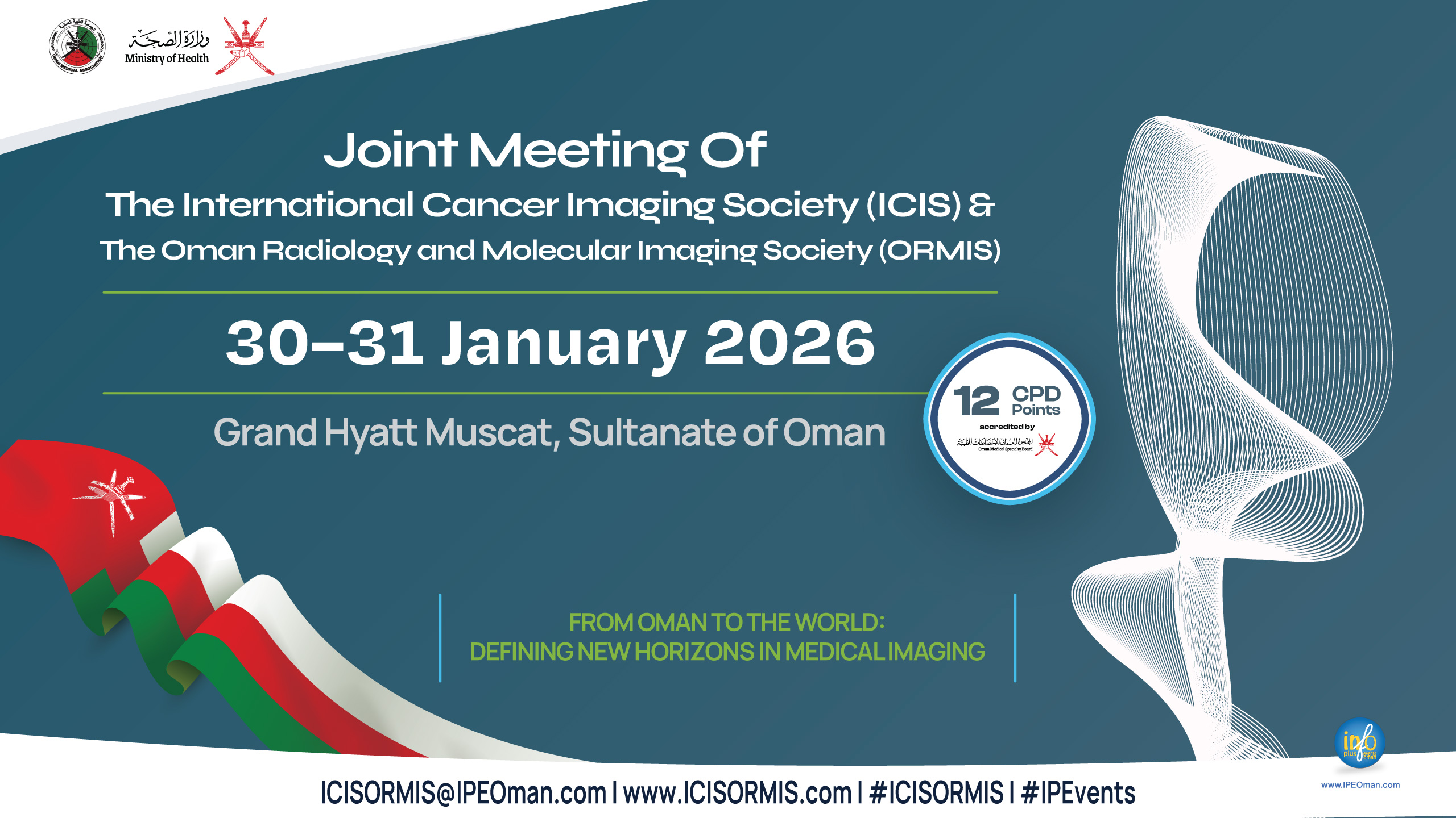 On behalf of the Organizing Committee, it is with great pleasure that we welcome you to the Joint Meeting of the International Cancer Imaging Society (ICIS) and the Oman Radiology and Molecular Imaging Society (ORMIS), taking place on January 30–31, 2026 in Muscat, Oman.